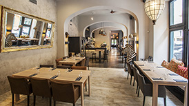 French-Asian fusion. Leave your stress behind and enjoy true relaxation with a view of Spanish Synagogue. Whether your taste buds desire a crab bisque, delicious club sandwich or fresh sea bass, here you can have it all.