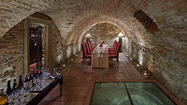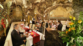 Unique restaurant carved in a cliff. The space is part of the Strahov monastery and served a purpose of wine cellar 800 years ago. Restaurant has its own well and an amazing garden just a few steps from Prague castle and Petřín hill.