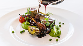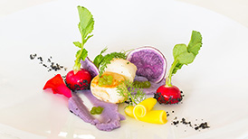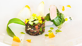 We cook international cuisine prepared by Jan Punčochář and his team. No specialization, no restrictions, we simply cook whatever we enjoy. Together with Jakub Čebiš, head sommelier, we pay attention to perfect harmony of food and wine. Jan Punčochář regularly refreshes his menu, nevertheless, his legendary Pidgeon from Anjou is always there.