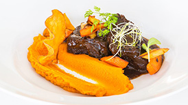 U Bílé Krávy is a family-owned French restaurant with a rich tradition of sixteen years specializing in Charolais beef. You can taste steaks from different parts of the bull as well as Braised beef rump cooked for 24 hours (bourgignon). Also you can enjoy the tasty meat preparation "sous vide", which is a method of cooking in an vacuum in a water bath up to 60 degrees Celsius.
