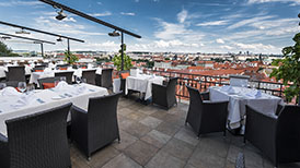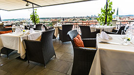 Ginger & Fred is located on the seventh floor of the Dancing Building, where you can enjoy original dishes in the company of works of modern art with a breathtaking view of Hradčany, Prague Castle and the National Theater. The menu is changed four times a year and in summer, you must not miss out on a broad selection of ice creams and sorbets. Ginger & Fred is an ideal place for business and private lunches, romantic dinners and company parties.