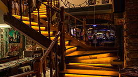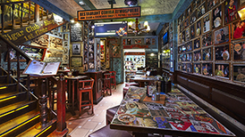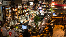 Famous cocktail bar and restaurant in Prague, Creole specialties, in the evening live Cuban band.