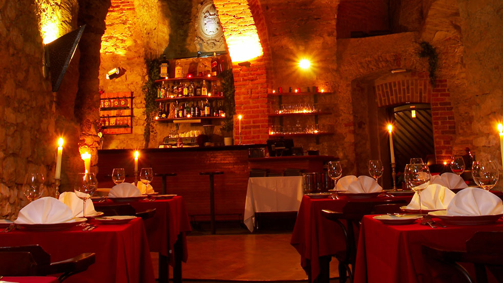 The lower room of Peklo captivates with its atmosphere and wide vaults that stretch up to 10 meters. In the past wine was fermented and produced there but today the hall is used as the main dining room and banquet hall. Every Friday and Saturday live music. Romantic space with lit candles is ideal for private dinners or corporate parties.
